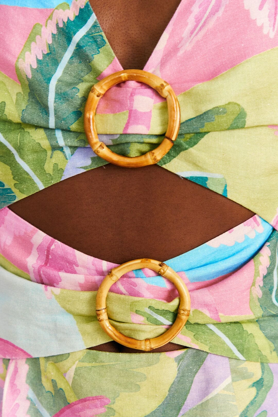 - Cut-out bodice with bamboo buckles