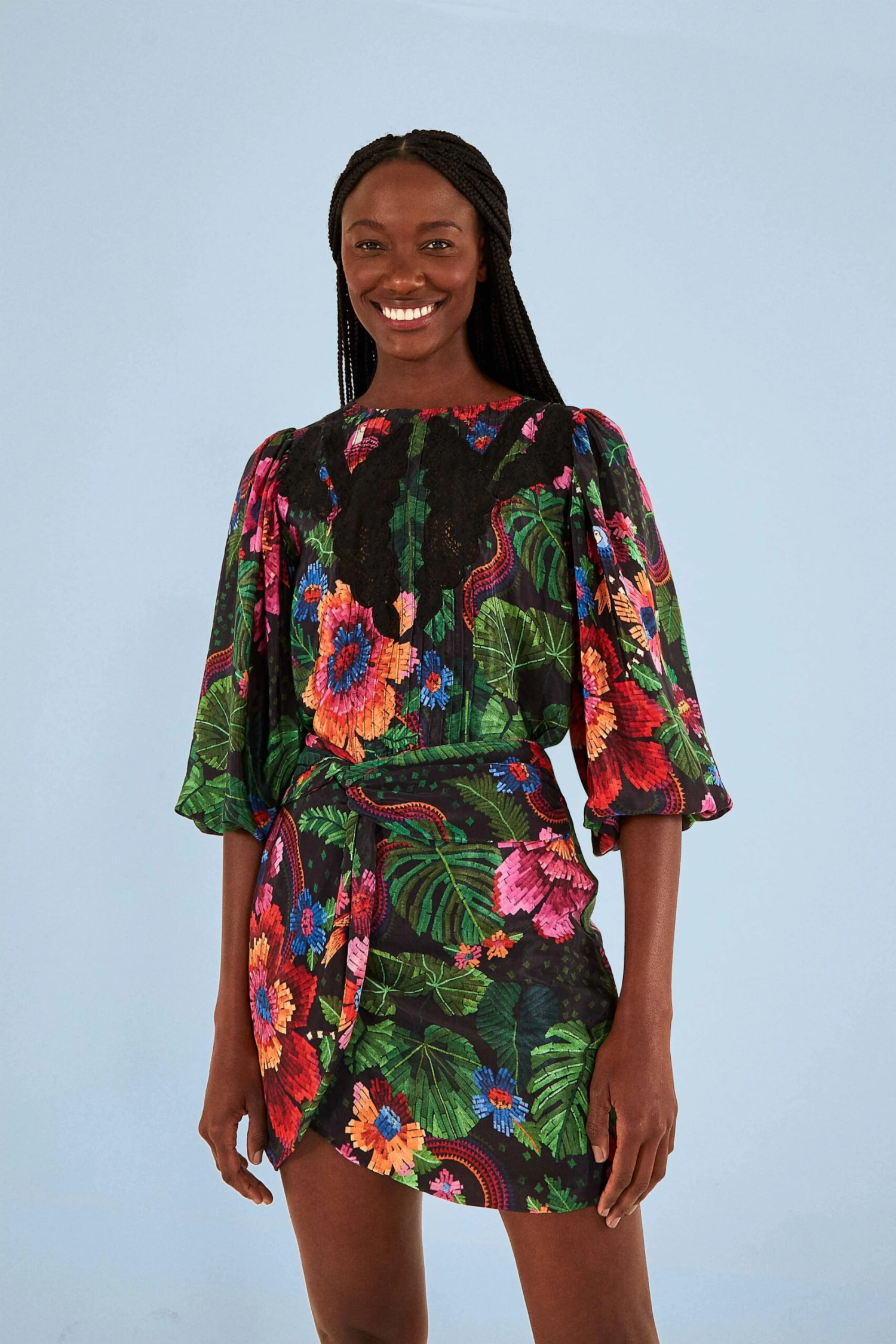 Get into a flowerful state of mind with the Black Blooming Garden Mini Skirt. It features an effortless silhouette with a front knot for that head-turning accent and a print to let it blossom inside your wardrobe all season long. The mini length will put your bold shoes in the spotlight, and the Black Blooming Garden Blouse is right here, waiting to be the coolest match <3 Nobody’s judging if you want to wear your new fave bottom on repeat, baby!