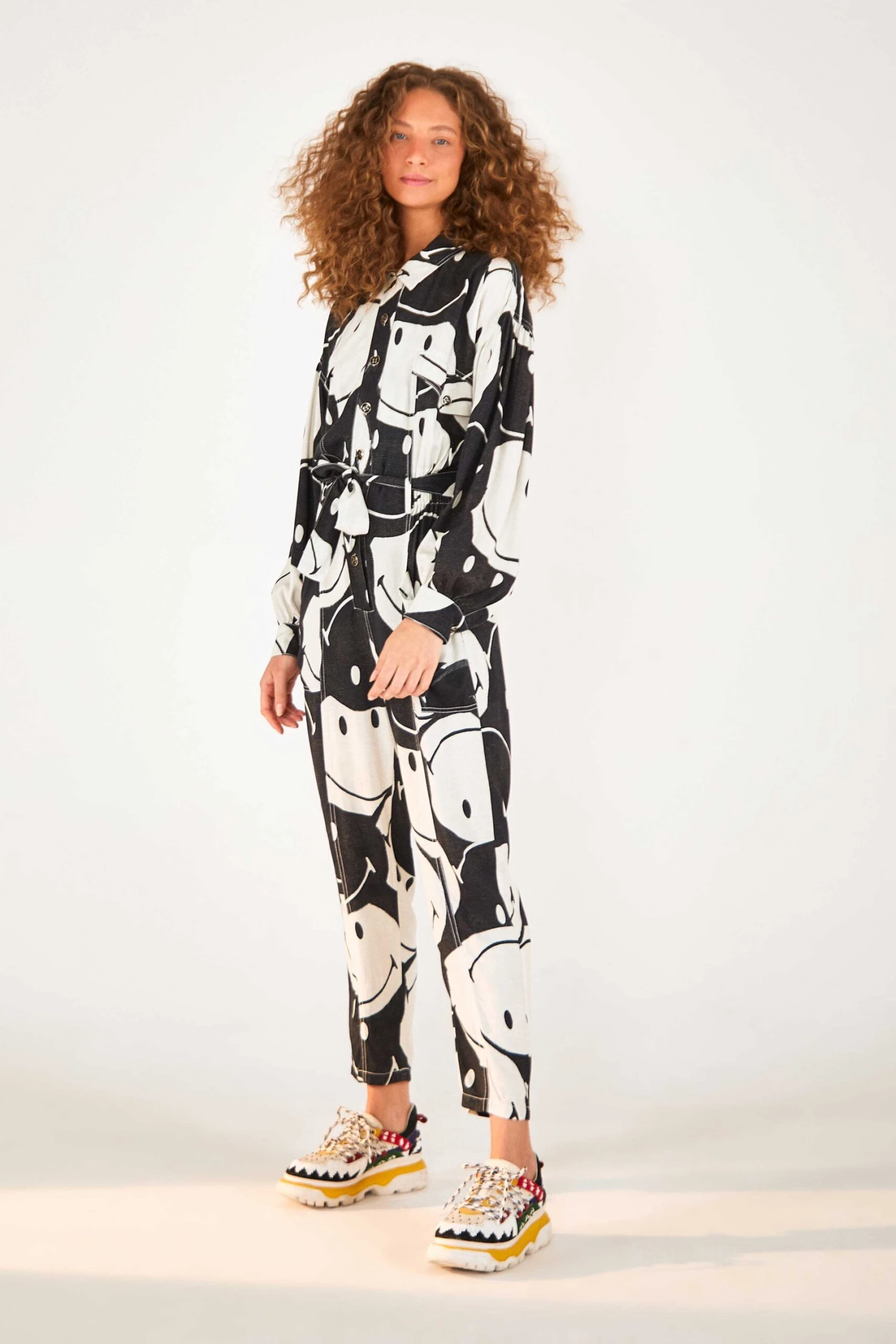 Your season is off to a happy start! The Black & White Smiley® Jumpsuit is here to add more fun to your days with its pop color palette in a cozy fit. So invite your bold FARM Rio Shoes and layers to spread joy all around, whatever the plans, with high doses of optimism!