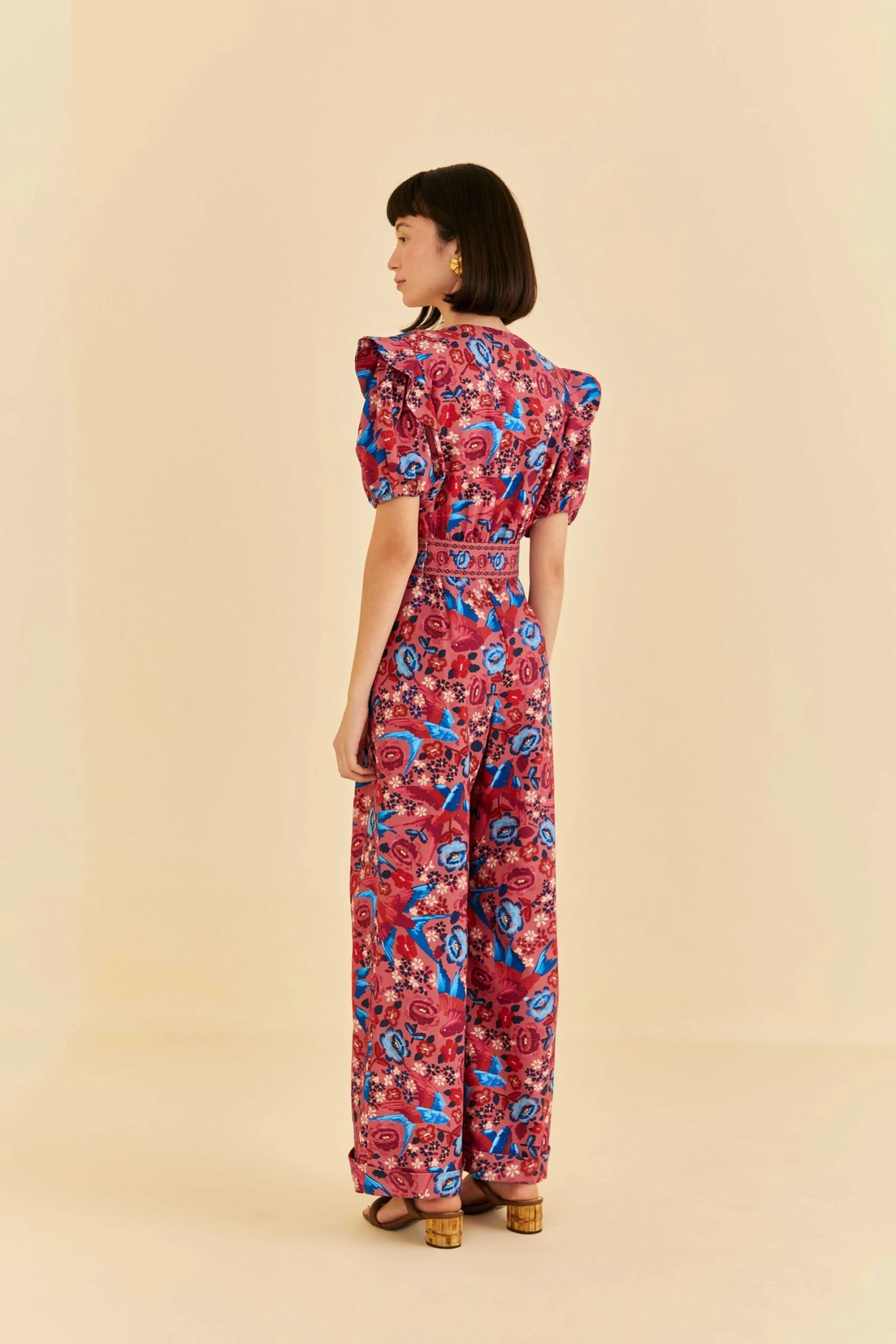 Be the reason why everyone turns their heads with the Blush Floral Birds Jumpsuit. This chic piece is here to be your season’s statement. The nature-inspired print and romantic