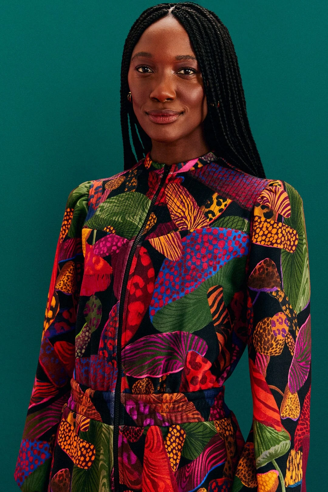 Dressing in happiness is definitely our thing! The Leopard Mushroom French Terry Jumpsuit proves that you can find colorful ways to spread joy, whatever the season. It features the coziest fit ever with a versatile zipper, long sleeves, and a needs-no-introduction kind of print. Your standout shoes are very welcome to complete this jaw-dropping look <3