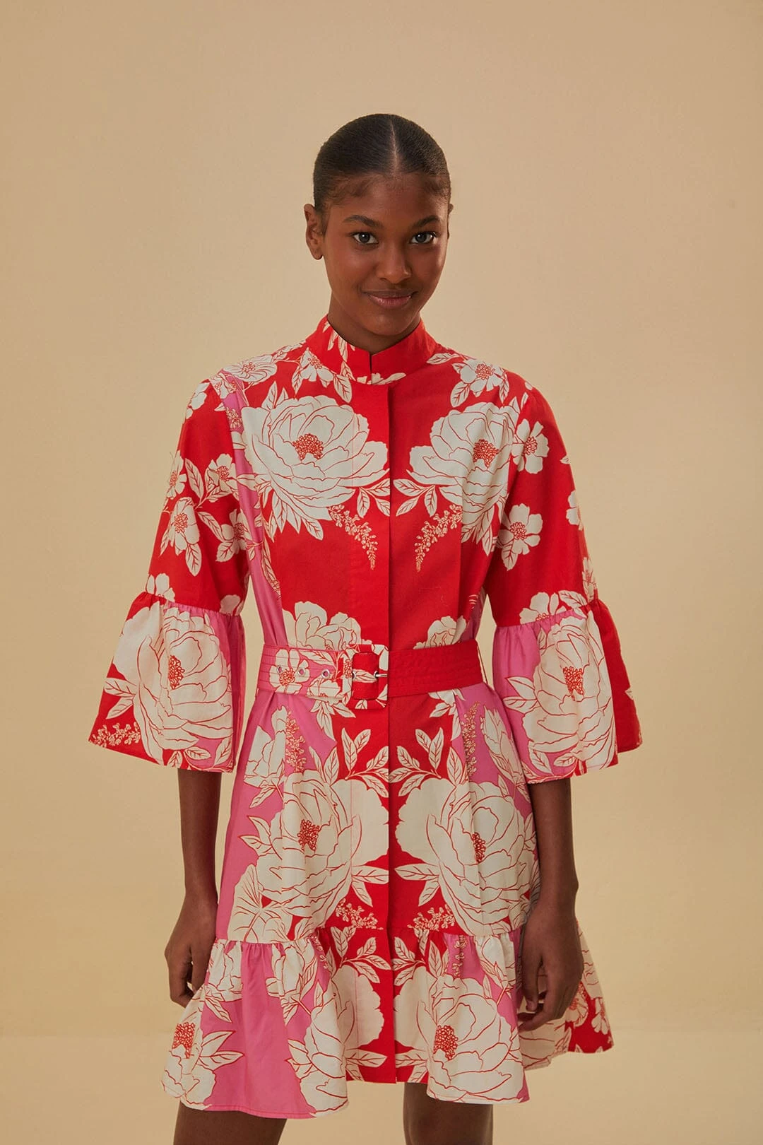 Your new favorite dress is in bloom with bright flowers! The Pink Soft Garden Short Sleeve Mini Dress has an effortless silhouette with a high neck, bold sleeves, and a belt to give you some shape. Add some cool shoes and artisanal accessories to complete your look, and you’ll be sure to turn heads wearing your best self.