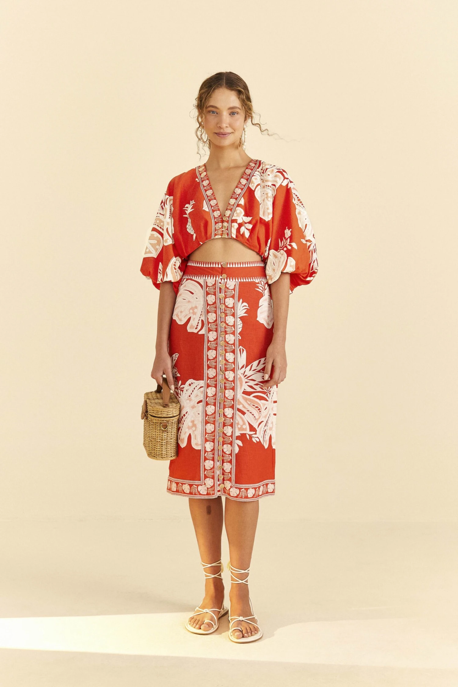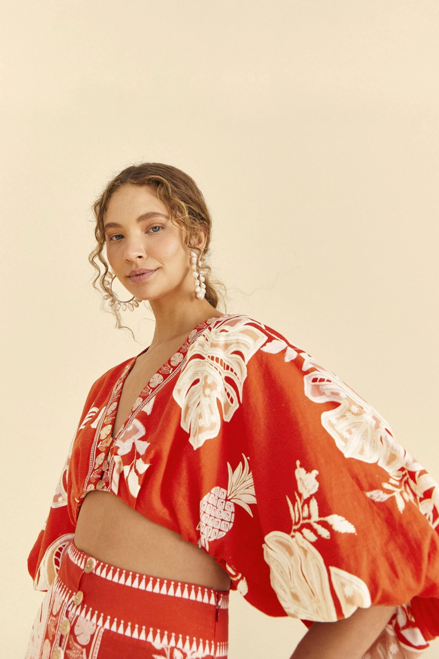 Embody the exuberant energy of the season in a Summer-ready style. The Red Lace Monstera Crop Top brings an easy silhouette with standout sleeves to go with your solar flow and one of the must-have prints of our new collection. For a chic-yet-cool look, you can bring midi skirts or pants on or throw shorts and mini skirts for a fun vibe: either way, you’ll be effortlessly walking on the brightest side!