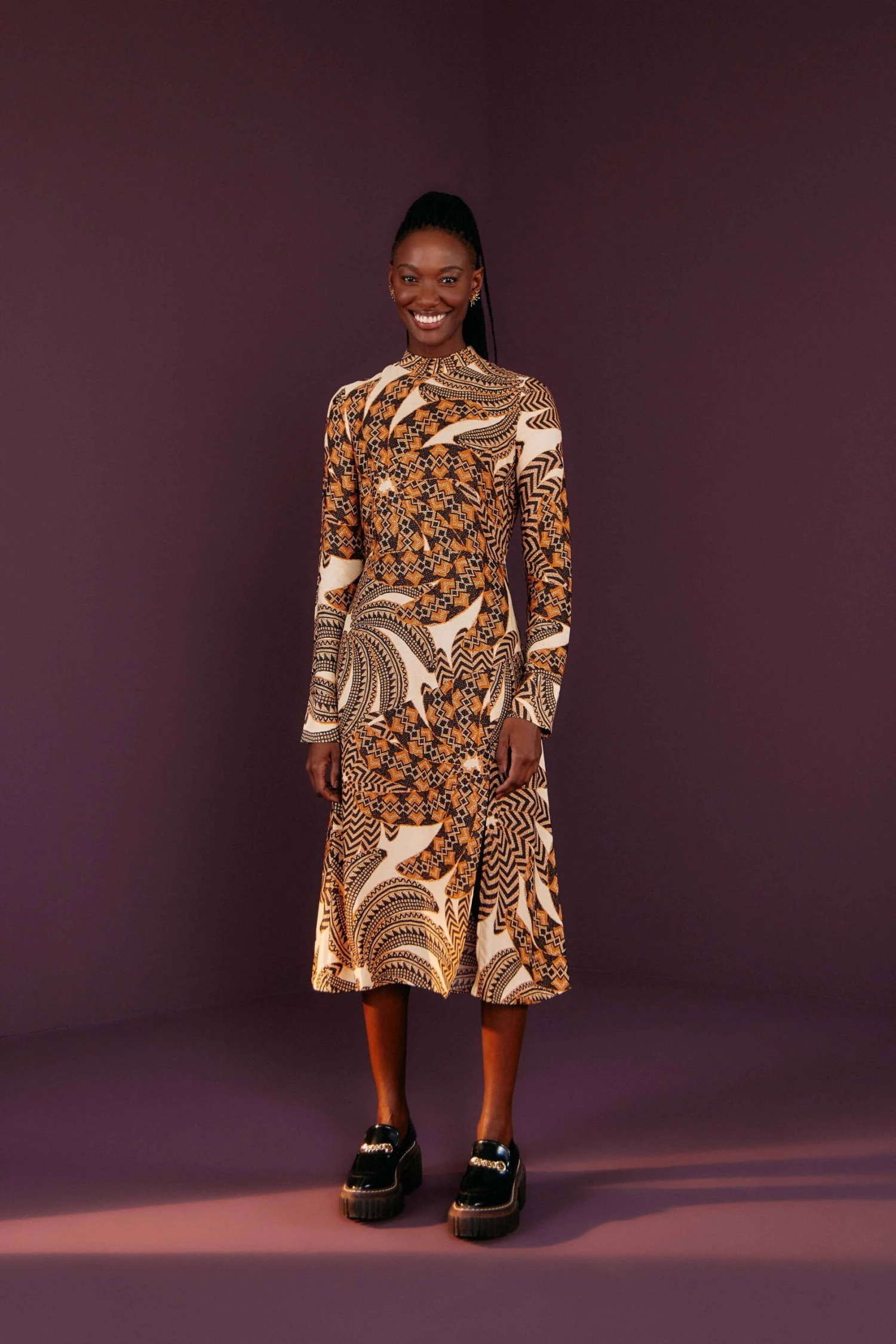 A fierce way to feel Fall-ready, whatever the plans! The Sand Yawanawa Vanahu Lenzing™ Ecovero™ Viscose Midi Dress lands here to walk you from AM-PM situations without changing.