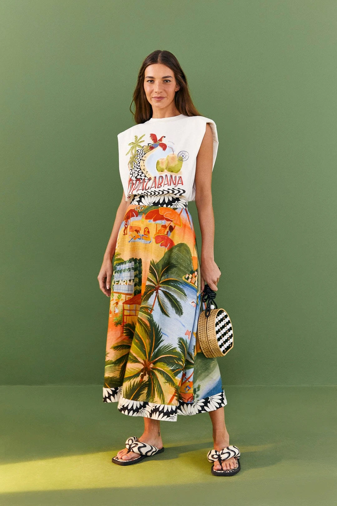 Sometimes you can stay in your comfort zone! The White Copacabana Organic Cotton T-Shirt is the new definition of a cozy fave: both the shape and the Rio-inspired print will walk you through joyful plans, and the padded shoulders are a WOW detail. Invite all your bottoms to have fun, from pants to shorts to overalls (and every fresh style in between!).